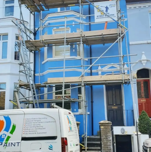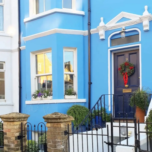 Work done by Marcin. Products used were Johnstones Masonry paint in Electra & Dulux on the front door in Oxford Blue.