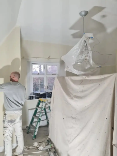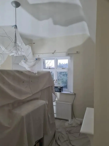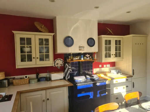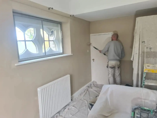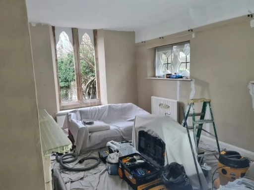 Work done by Lewis & Turkey. The products we used in the bedroom were Farrow & Ball in Pointing. The product used in living room was Farrow & Ball in Oxford Stone. The product used in the kitchen was Farrow & Ball paint in Rectory Red.